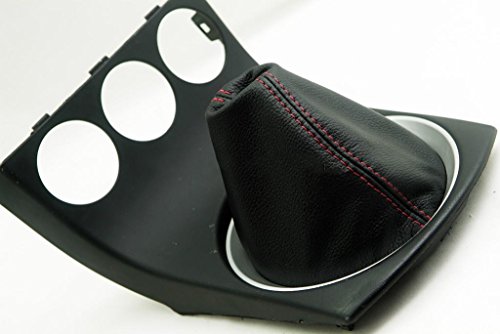 Fits 2003-2008 Nissan 350Z Real Black Leather Manual Shift Boot with Red stitching. (Leather Part Only)
