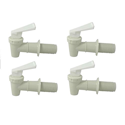 Plastic Faucet 4-pack, White, Spigot, 3/4 Inch, Water Beverage Dispenser, Gravity Feed, Made in the USA, Fda-approved, with Washers and Nuts