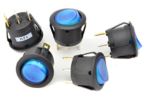 12 Volt Round 3 Prong BLUE LED Rocker Switch SPST Toggle Switch 12V 5 Pack