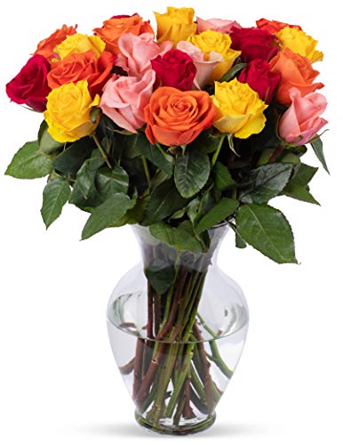 Benchmark Bouquets 2 Dozen Rainbow Roses, With Vase (Fresh Cut Flowers)