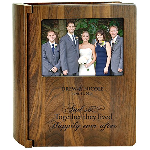 Personalized Mr & Mrs Wedding Anniversary Photo Album and so Together They Lived Happily Ever After for Bride and Groom Couple Walnut Memory Book Holds 200 4x6 Photos Made of Walnut