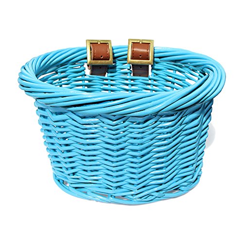 Colorbasket 01501 Kids Front Handlebar All Wicker Bike Basket, Hand Woven, Adjustable Leather Straps, Blue