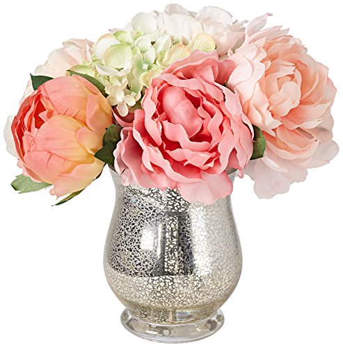Peonies, Roses and Hydrangeas 10”W Flowers in a Glass Vase