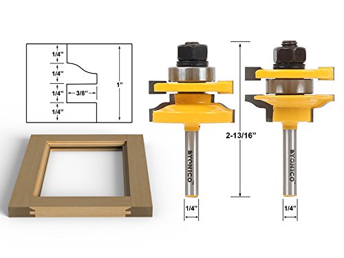 Yonico 12243q Ogee 2 Bit Rail and Stile Router Bit Set 1/4-Inch Shank