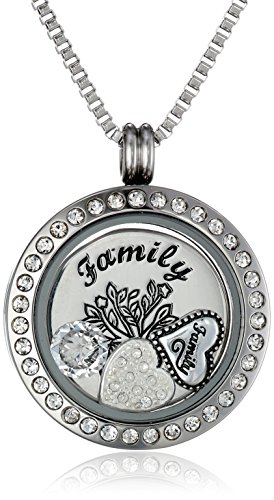 Charmed Lockets My Family My Love Pendant Necklace with "Family" Floating Charm Set, 24"