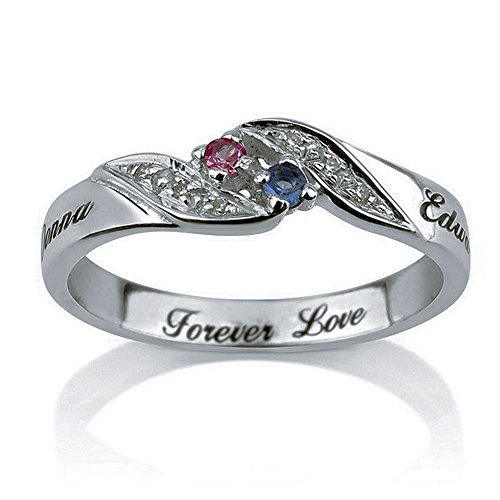 Personalized Engraved Promise Ring Engagement Promise Ring 925 Sterling Silver, Couples Ring with SimulatedBirthstones
