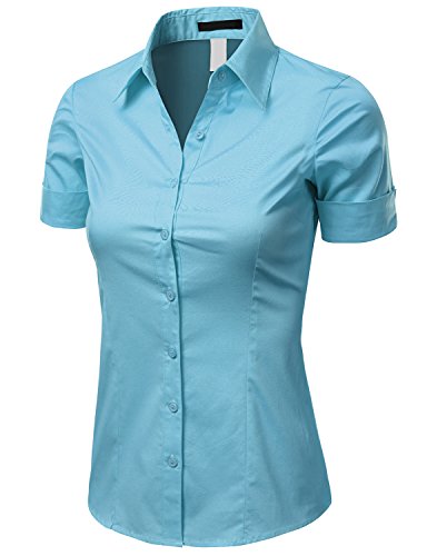 Doublju Women Short Sleeve Basic Simple Spandex Shirt,Skyblue,3X