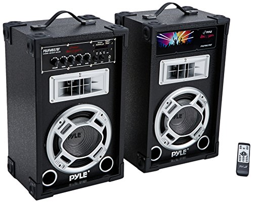 Pyle Dual 800 Watt Powered PA Bluetooth Speaker System Disco Jam Two-Way DJ Speakers | karaoke machine | USB/SD Card Readers, FM Radio, 3.5 mm AUX Input (Active & Passive Speakers) (PSUFM837BT)