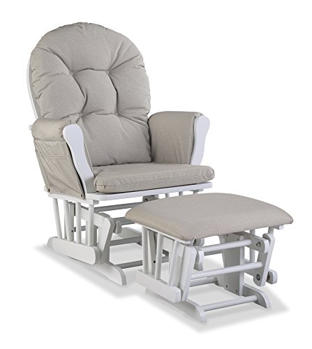 Storkcraft Premium Hoop Glider and Ottoman (White Base, Taupe Swirl Cushion) – Padded Cushions with Storage Pocket, Smooth Rocking Motion, Easy to Assemble, Solid Hardwood Base
