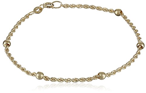 14k Yellow Gold Rope Bead Station Bracelet, 7.5"