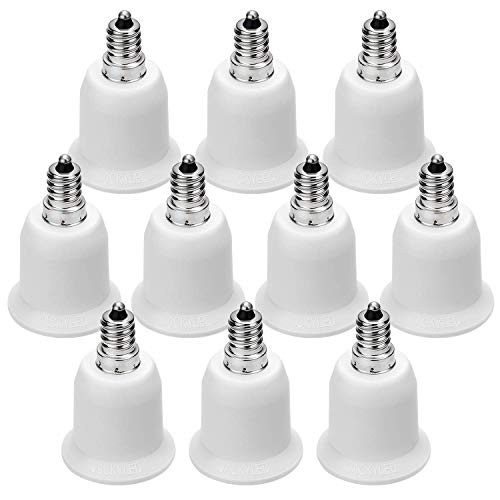 JACKYLED E12 to E26 Adapter E12DZx10 Candelabra Screw E12 Light Socket to Medium Base E26 E27 Converter Light Socket Adapter Chandelier Socket E12 Light Bulb Adapter White (10-Pack)