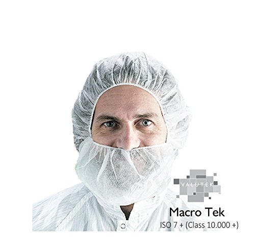 Valutek VTBCV-18 Polypropylene Latex Free Cleanroom Beard Cover [Non-linting, Non-woven, Disposable, 18 inch, White] 100 Pieces