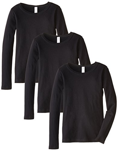 Clementine Apparel 3-Pack Big Girls Tween Youth Crew Neck Long Sleeve T Shirts