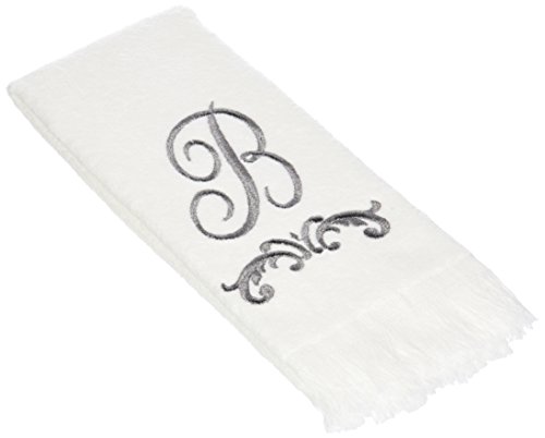 Avanti Monogram Fingertip Towel, B-Scroll, White/Pewter