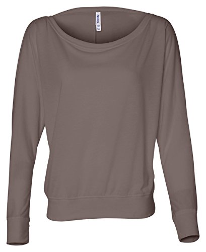 Bella womens Flowy Long-Sleeve Off Shoulder T-Shirt(8850)-PEBBLE BROWN-2XL