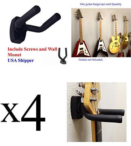 Set of 4 Guitar Hangers Hook Holder Wall Mount Display - Fits all size Guitars, TopStage, w/Mounting Hardware