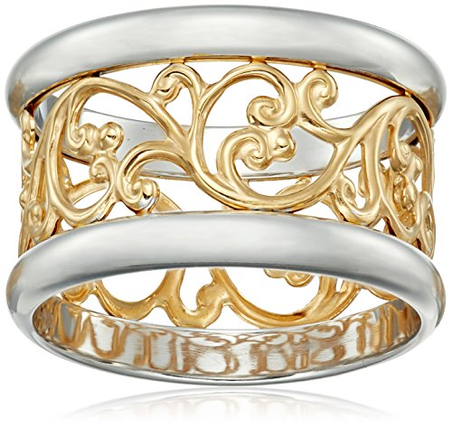 Rhodium Plated Sterling Silver Two-Tone Filigree Band Ring