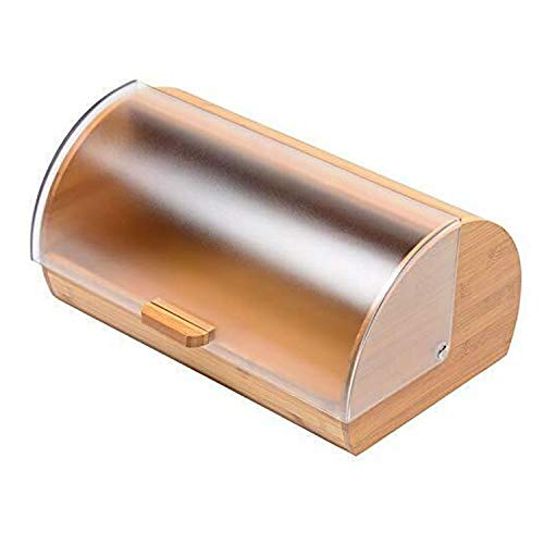 Blue Donuts Bread Box made of pure Bamboo with stylish Acrylic easy glide cover with handle