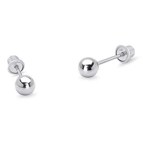 14k White Gold 2-6mm Plain Hollow Gold Ball Children Screw back Baby Girls Stud Earrings