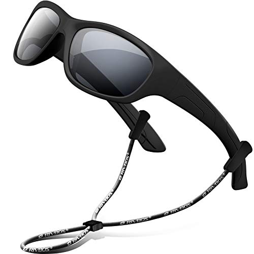 RIVBOS Rubber Kids Polarized Sunglasses With Strap Glasses Shades for Boys Girls Baby and Children Age 3-10 RBK023 (Blue)