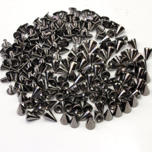 200 piece(100 spikes-100 screw's)Lot 3/8" Gun Black Spots Cone Screw Metal Studs Leathercraft Rivet Bullet Spikes