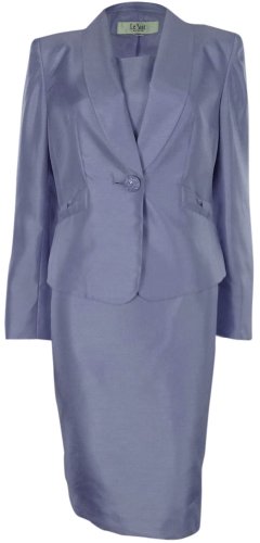 Le Suit Long Sleeve Women's Petite Sleeveless Dress Suit Set Blue 12P