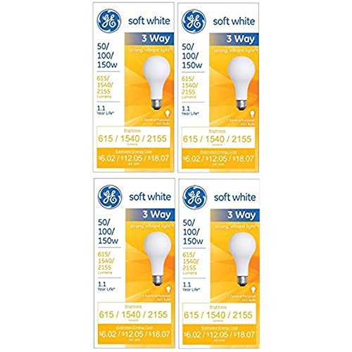 GE 97494 Lighting 50/100/150-Watt, 3-Way Light Bulb, Soft White, 4-Pack