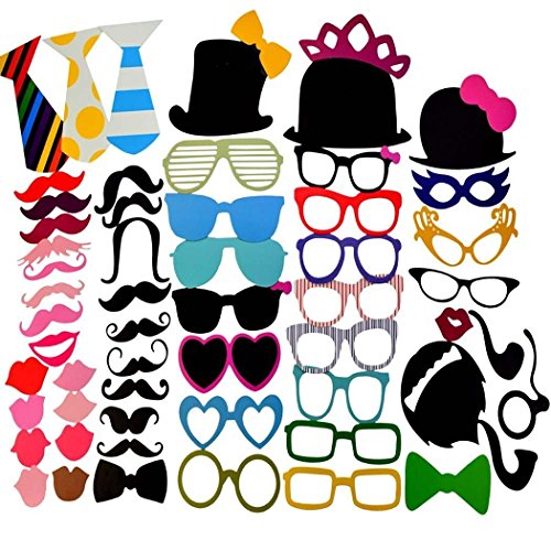 Miayon 58PCS Colorful Props On A Stick Mustache Photo Booth Party Fun Wedding Favor Christmas Birthday Favor