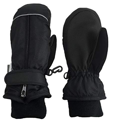 N'Ice Caps Kids Thinsulate and Waterproof Easy-On Zip-Up Mittens (6-7 Years, Black Solid/Reflector)