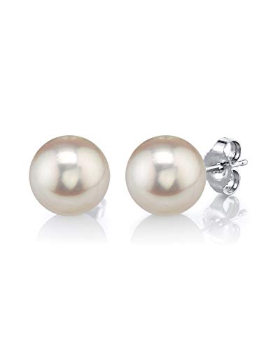 THE PEARL SOURCE 14K Gold 8-9mm Round White Freshwater Cultured Pearl Stud Earrings for Women