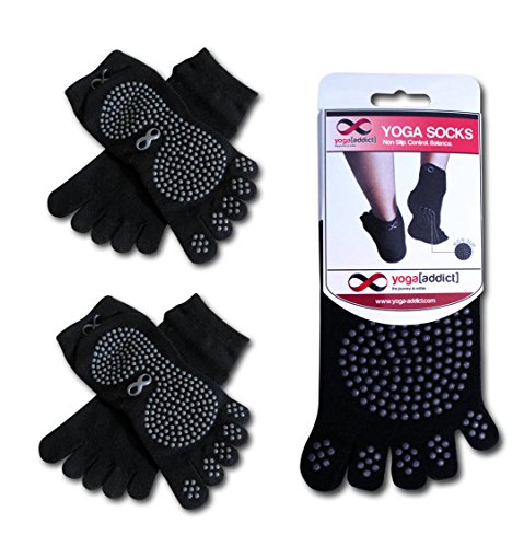 Yoga Full Toe Socks (Full Black), 2 Pairs Value Pack Set, Full Toe Yoga Socks, Non Slip and All Grip Socks, Size S/M