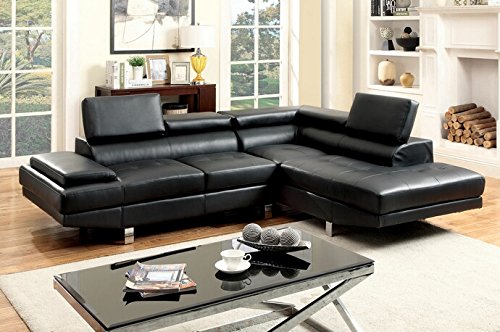 2 pc Kemina collection modern style black bonded leather match upholstered sectional sofa with adjustable headrests and tufted seats