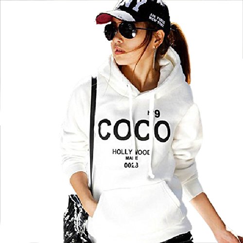 Wexinbuy Girl Casual Hoodie Thick Hoody Coat Letter Print Jacket Sweatshirt White, Large
