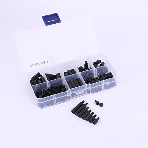 Rosiness 180Pcs M3 Nylon Hex Spacers Screw Nut Stand-off Plastic Accessories Assortment Black