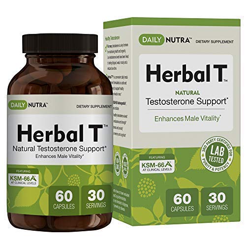 Herbal T Natural Testosterone Booster for Men: Increase Energy, Endurance, and Vitality - Featuring Clinically Proven KSM-66 Ashwagandha (1-Bottle)