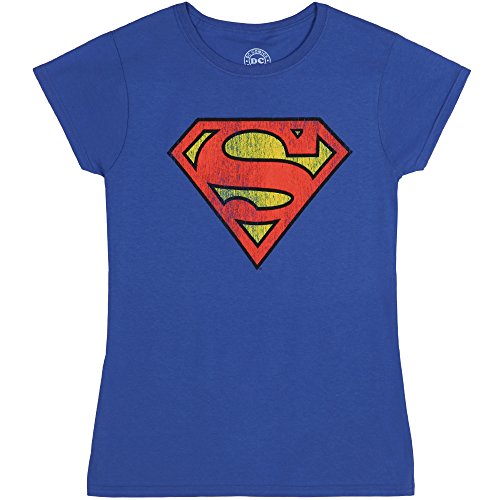 Superman Distressed Logo Juniors T-Shirt, Small, Blue
