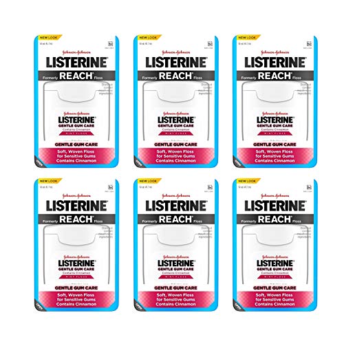 Listerine Gentle Gum Care Interdental Floss for Sensitive Gums, Oral Care, Mint, 50 Yards, Pack of 6