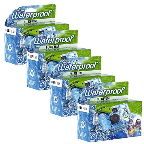 Fujifilm Quick Snap Waterproof 35mm Single Use Camera, 4 Pack (Blue/Green/White)