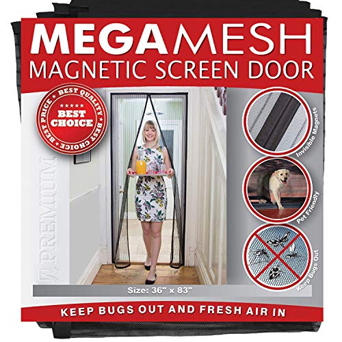 Magnetic Screen Door – Heavy Duty Reinforced Mesh & Full Frame Hook & Loop ACTUAL SCREEN SIZE 36"x83" Fits Doors Up to 32”x82” MegaMesh Comes With a 12 Month Warranty
