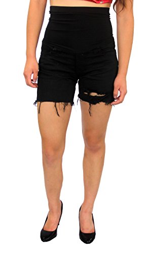 Trcclothing Black Ripped Maternity Jeans Embroidery Ripped High Waist Elastic Shorts Summer (Small)