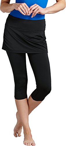 Coolibar UPF 50+ Women's Shorebreak Skirted Swim Capris - Sun Protective (X-Large- Black)