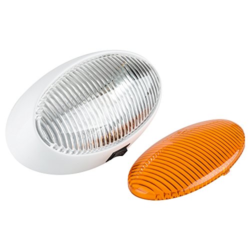 Lumitronics RV 12V Oval Porch Utility Light with On/Off Switch - Clear & Amber Lense (White)