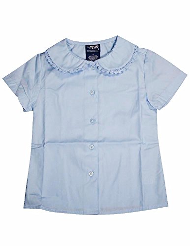 French Toast School Uniform Girls Short Sleeve Peter Pan Blouse with Lace Trim Collar, Blue, 5