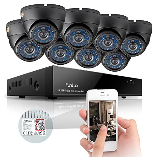Funlux 8CH 960H Video DVR QR Code Weatherproof Security System with Built-in IR CCTV Cameras