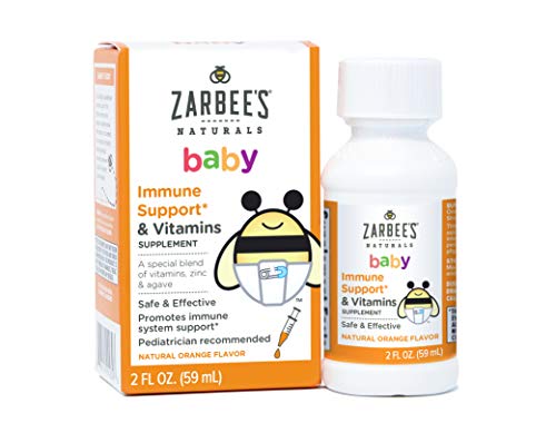 Zarbee's Naturals Baby Immune Support* & Vitamins Supplement with a Special Blend of Vitamins, Zinc, and Agave, Natural Orange Flavor, 2 Ounce Bottle