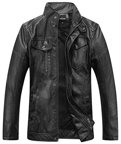 chouyatou Men's Vintage Stand Collar Pu Leather Jacket