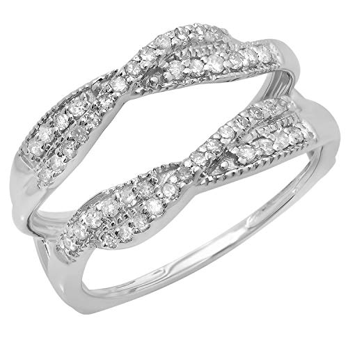 Dazzlingrock Collection 0.40 Carat (ctw) 14K Gold Round Diamond Ladies Anniversary Wedding Band Swirl Enhancer Guard Double Ring