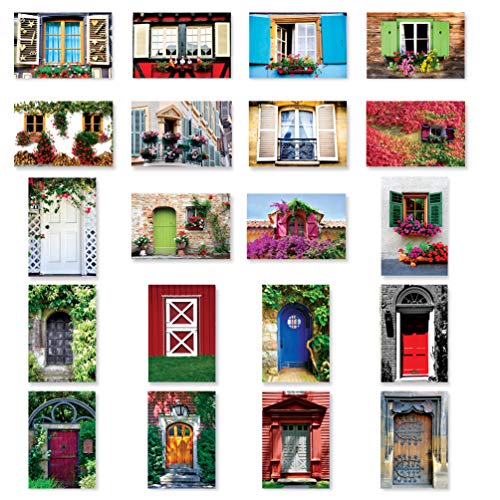 DOORS & WINDOWS postcard set of 20. Post card variety pack with door and window theme postcards. Made in USA.