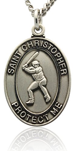 St Christopher Baseball Medal in Sterling Silver With Rhodium Plated Nickle Necklace