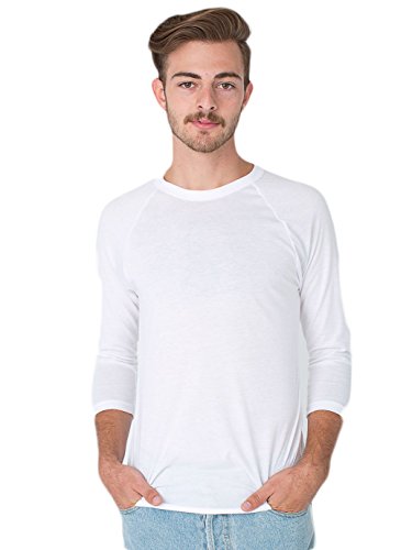 American Apparel Unisex Poly-Cotton 3/4 Sleeve Raglan Shirt, White/White, Medium